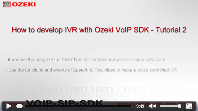 As you can see, with the help of these examples, you can create and modernize your IVR system by using Ozeki VoIP SIP SDK. Now you are able to use the Blind Transfer method and the components of the SpeechToText class if you would like to control your IVR system via human speech.